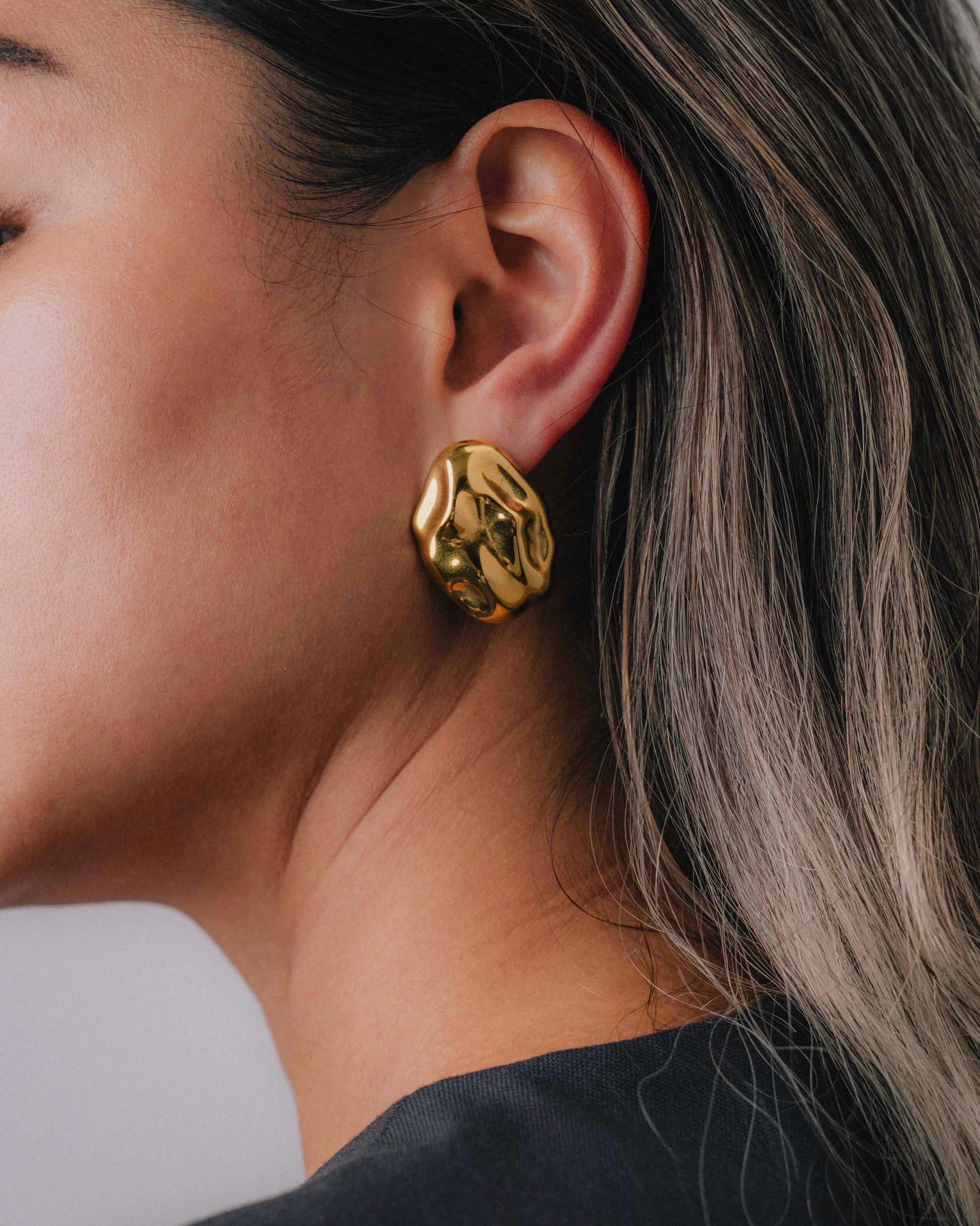 The Mave earrings present unique, spherical shapes that catch the light with a delicate gleam. Boasting a distinctive yet sophisticated contour, they provide a simple way to enhance daily attire with an air of elegance. These earrings are ideal for those laid-back days when you desire to look effortlessly chic with minimal fuss. See Mave in Silver.